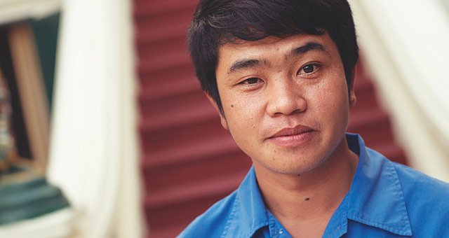 Old lao style building, lovely rooms with private balcony, and large shared garden grass.